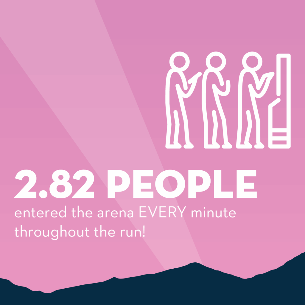 - 2.82 people entered the arena every minute throughout the run.