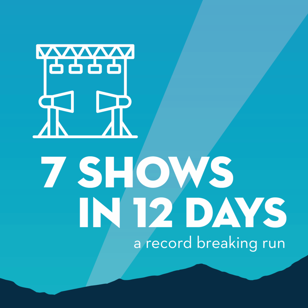- 7 shows in 12 days — record-breaking run.