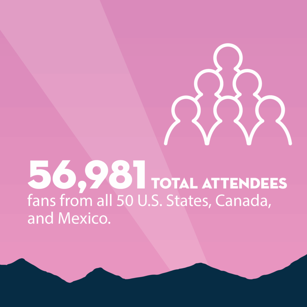 - 56,981 total attendees — fans from all 50 U.S. states, Canada, and Mexico.
